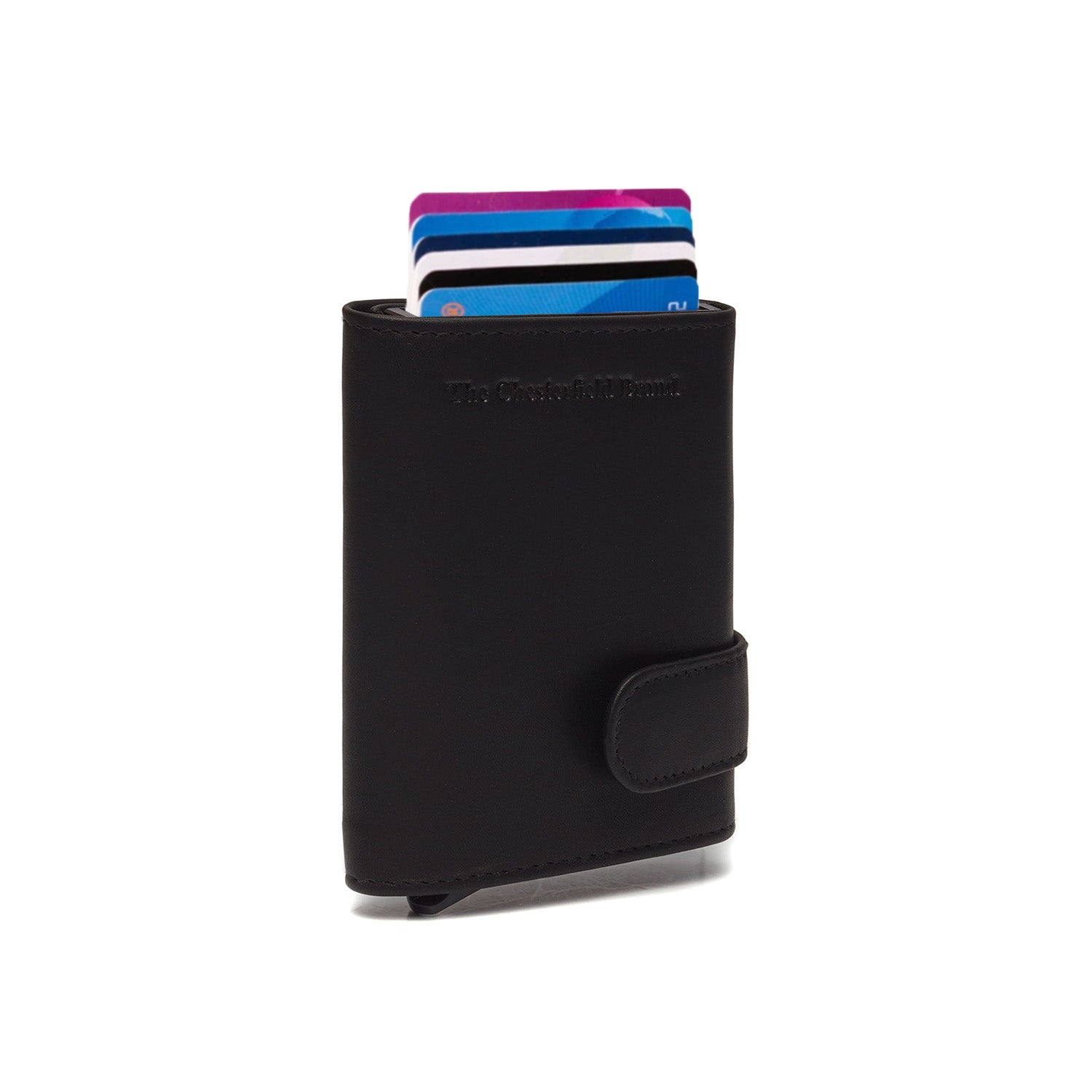 Model Frankfurt is voorzien van een Wax Pull Up leren hoes. Deze sluit met een omslag drukknoopsluiting en is voorzien van één insteekvak, twee pashouders en een klepvakje aan de achterkant voor kleingeld. Kortom, een veilige en praktische manier voor het meenemen en opbergen van je pasjes.